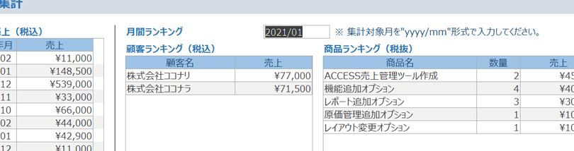 データ集計と分析は、ビジネス意思決定やパフォーマンス評価に欠かせないツールです。以下は、Accessの集計関数を使用した分析の例です: