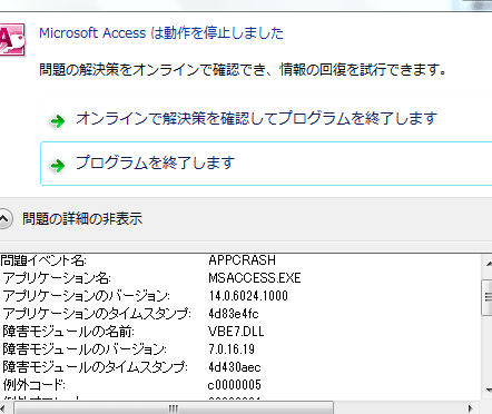 Accessの「動作を停止しました」エラーを解決する方法はありますか?