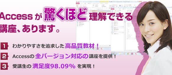 | 無料講座 | 初心者向け、手軽に学べる | Microsoft Access入門、Accessでデータベースの作成方法 |