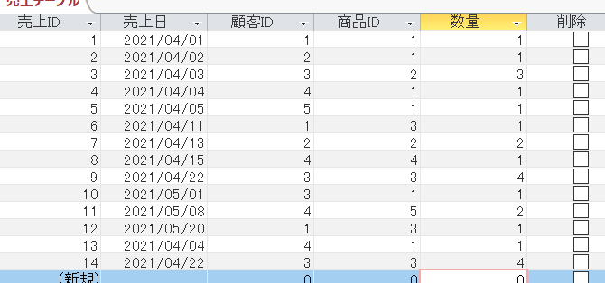 - 削除するレコードを選択する