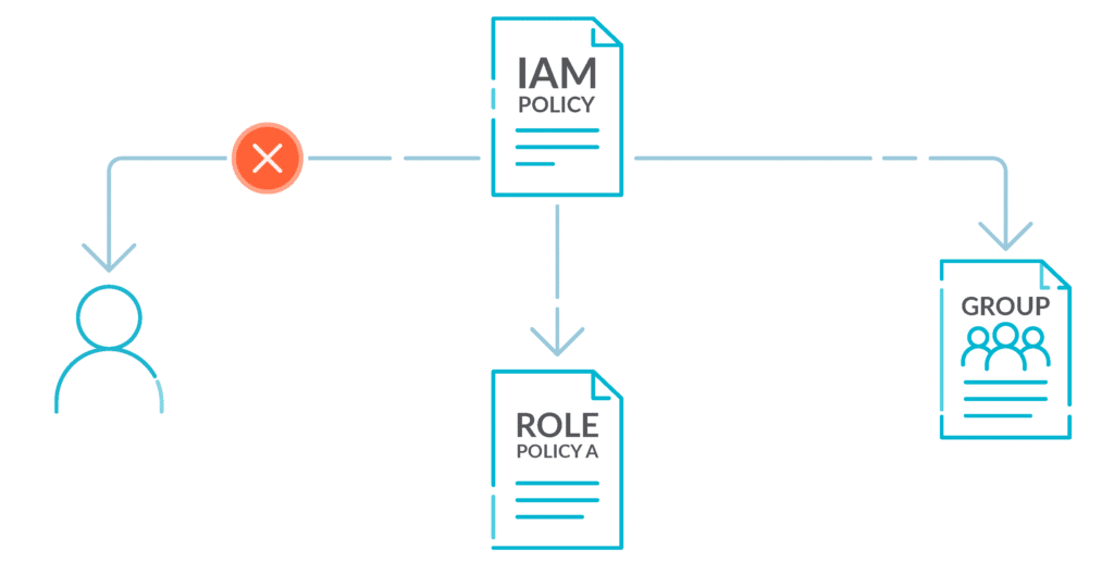 - IAMポリシーは個々のユーザー、グループ、またはロールのアクセスを制御します。