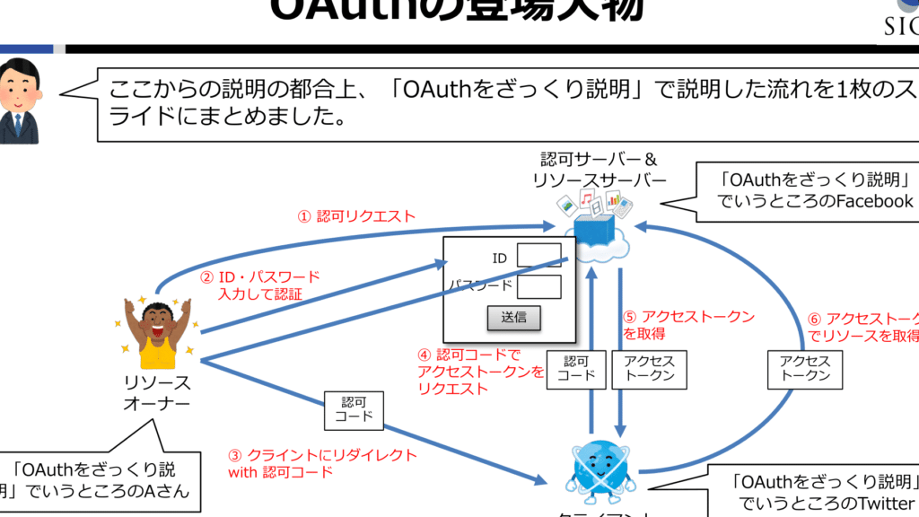 OAuth認可フローのプロセスについて詳しく説明してください。