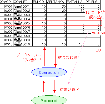 - オープン:レコードセットを開くことで、データベースからデータを取得します。