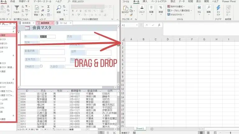 AccessデータをExcelにインポートする方法