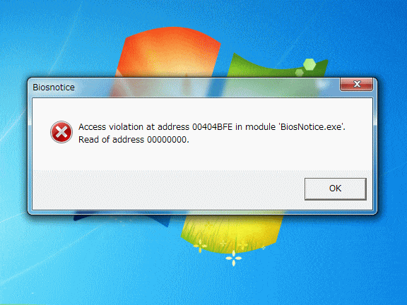BIOSNotice Access Violation エラーの原因